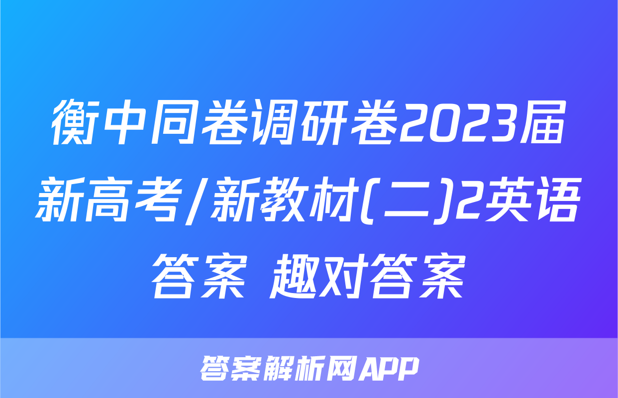 衡中同卷调研卷2023届新高考/新教材(二)2英语答案 趣对答案正在持续更新,目前知嘛答案为大家整理了相关试题及答案,供大家查缺补漏,高效提升成绩。