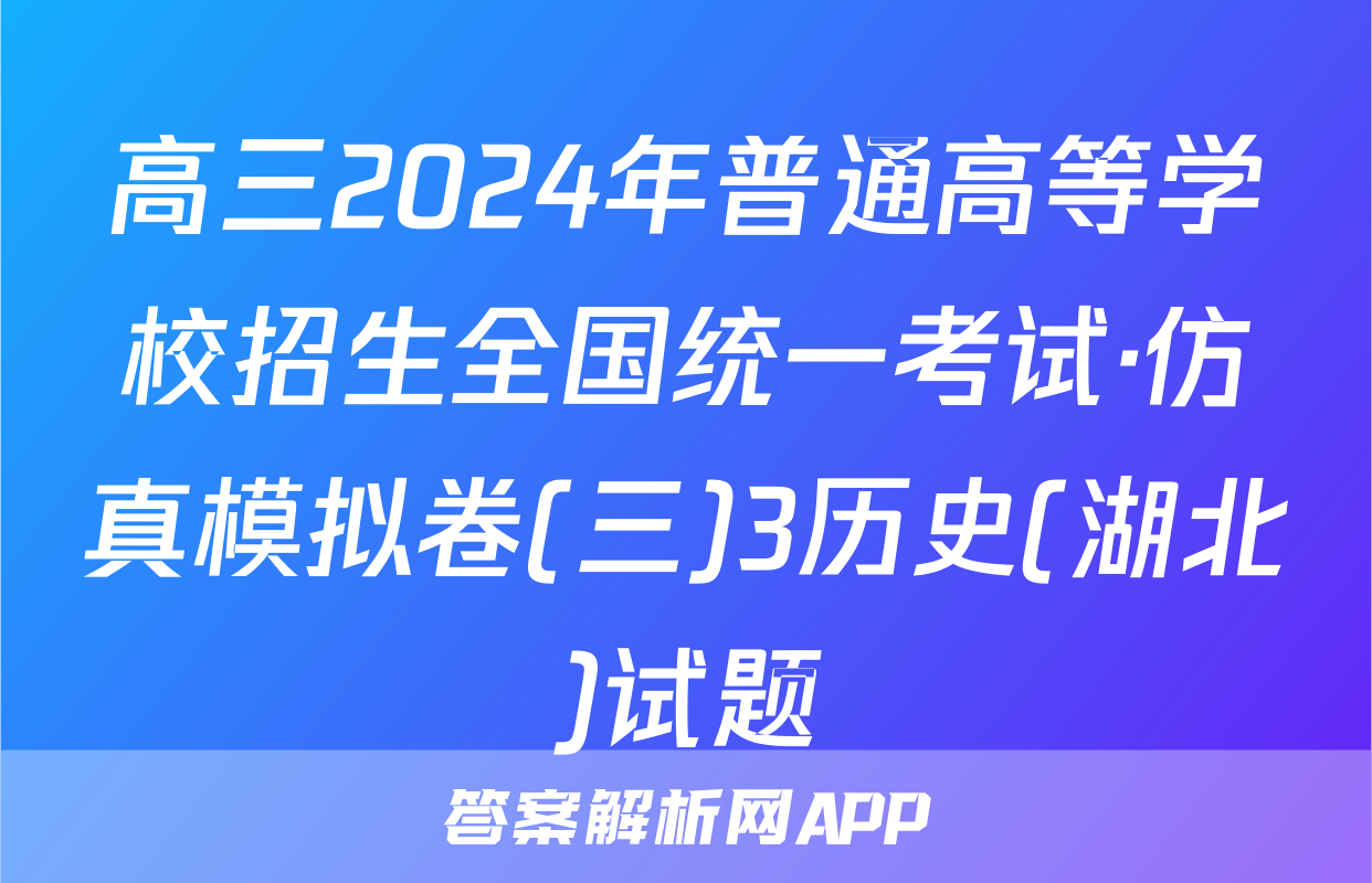 高三2024年普通高等学校招生全国统一考试·仿真模拟卷(三)3历史(湖北)试题正在持续更新,目前知嘛答案为大家整理了相关试题及答案,供大家查缺补漏,高效提升成绩。