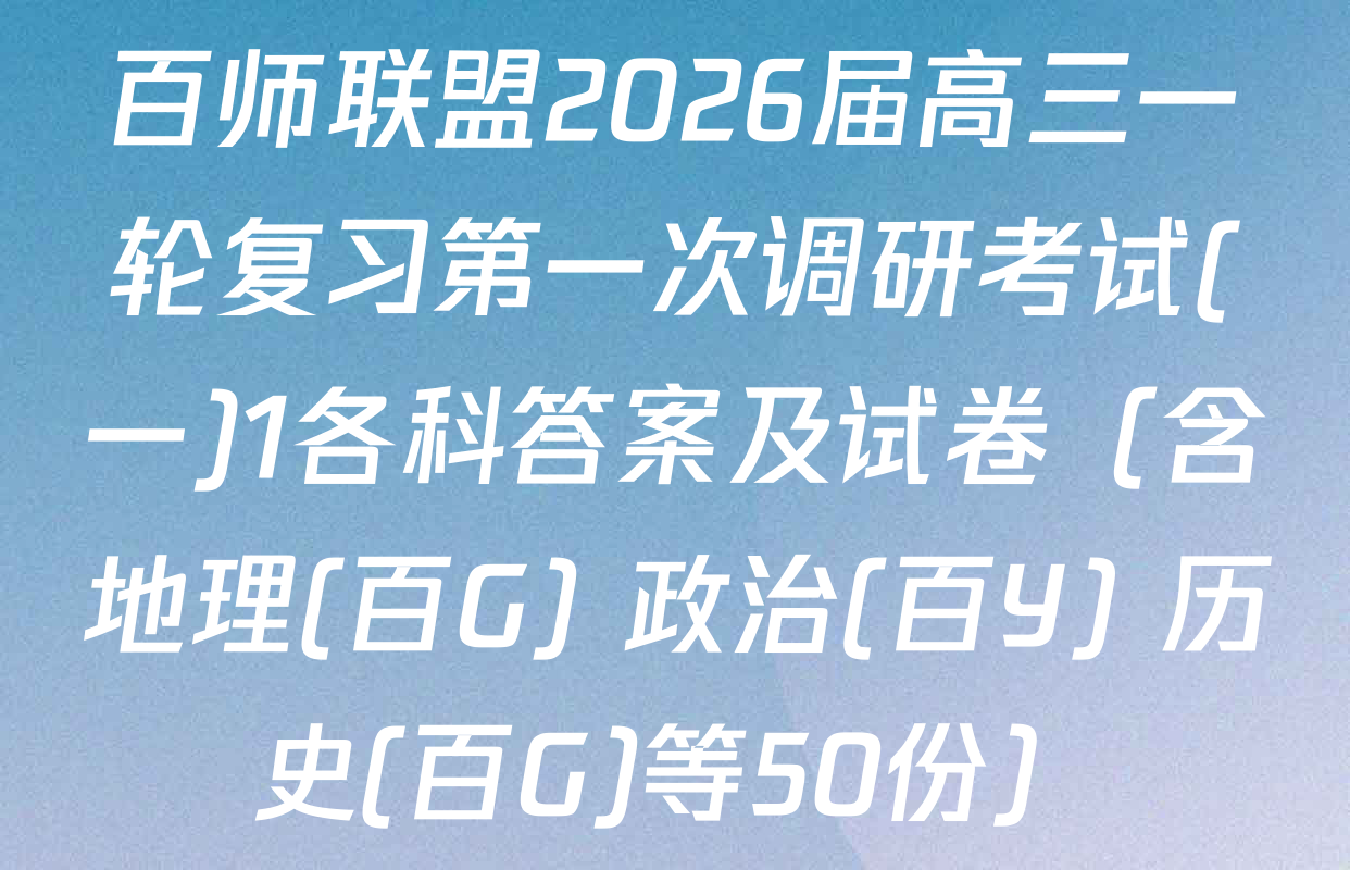 百师联盟2026届高三一轮复习第一次调研考试(一)1各科答案及试卷(含地理(百G) 政治(百Y) 历史(百G)等50份) 百师联盟2026届高三一轮复习第一次调研考试(一)1各科答案及试卷(含地理(百G) 政治(百Y) 历史(百G)等50份)将在2025.10.14星期二开始,包括物理(百S) 政治(百A) 历史(百L) 生物(百A) 历史(百S)等50大科目。吴老师将确保在每科目考试结束后,及时更新并提供最新答案和试卷,以便同学们能够及时参考。 table { width: 100%; border-collapse: collapse;... 阅读全文 赞同 0 0 0评论 9关注